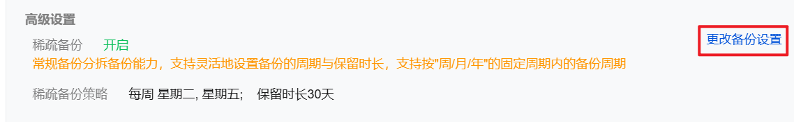 开启稀疏备份功能后,若您希望更改稀疏备份策略,您可参考如下操作。