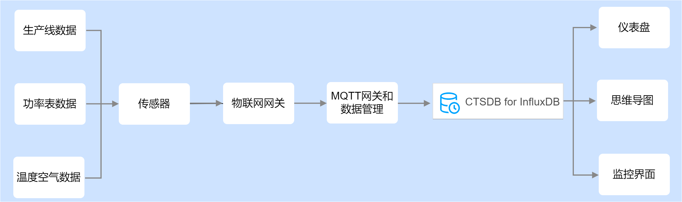 物联网/工业物联网需要把传感器采集的各种设备数据、仪表数据及环境数据等通过网络实时传输到中控系统,便于运维人员对设备运行情况、车间作业环境、生产状况进行实时监控、故障预测分析、趋势预测、可视化展示等。这些数据具有数据量大、实时性高、时间有序等特点。而时序数据库 CTSDB 3.0版具备高吞吐写入性能、低成本分级存储、精准地聚合分析,丰富的可视化大屏展示的能力,是物联网应用的理想选择。