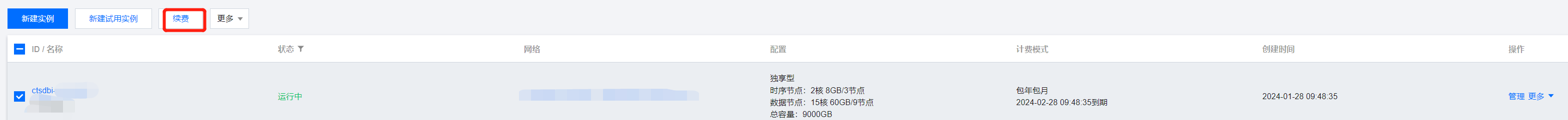 时序数据库 CTSDB 3.0 版独享型正式购买的包年包月实例即将到期时,您需要及时进行续费,避免资源到期无法使用而影响业务。