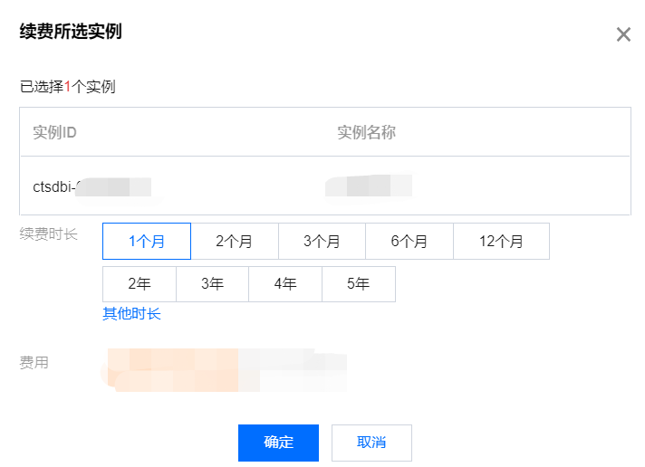 在续费时长,选择实例需续费的时长,按整月或整年选择。