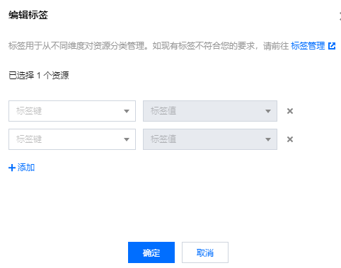 单击目标实例 ID,在实例详情页面的基本信息区域,单击标签右侧的。 5. 在编辑标签窗口,在标签键下拉列表中重新选择合适的标签键,并在标签值输入框选择对应的标签值。单击添加,可添加多条标签。