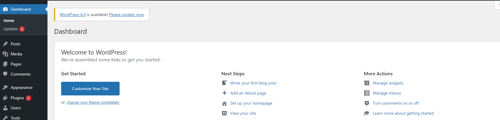 成功登录后,您可根据实际需要对 WordPress 进行管理、自定义和配置。如下图所示: