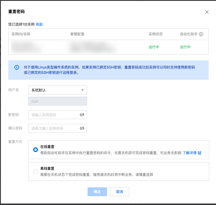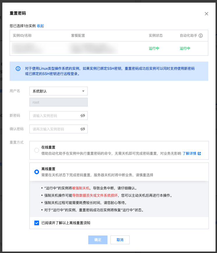 重置密码目前提供在线重置和离线重置两种方式。若您选择离线重置,您需要阅读离线重置须知,并勾选已阅读并了解以上离线重置须知。