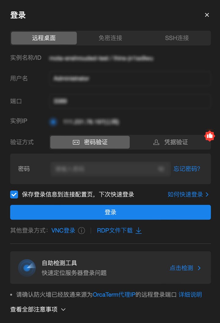 此外,您也可以使用 VNC 或者本地的 RDP 工具(如 Windows 自带的 MSTSC)远程连接 Windows 实例。