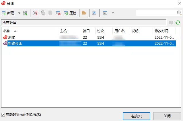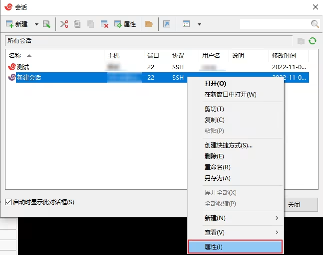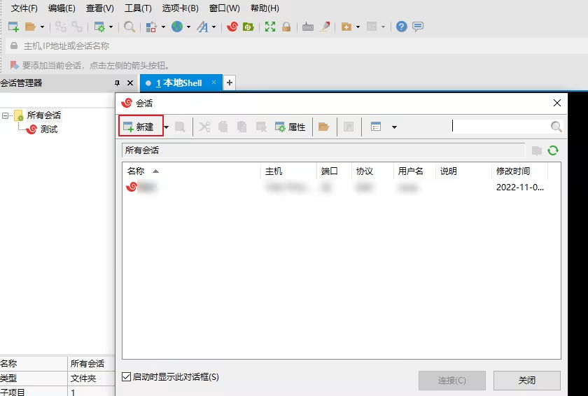 2. 在新建会话属性的弹窗中