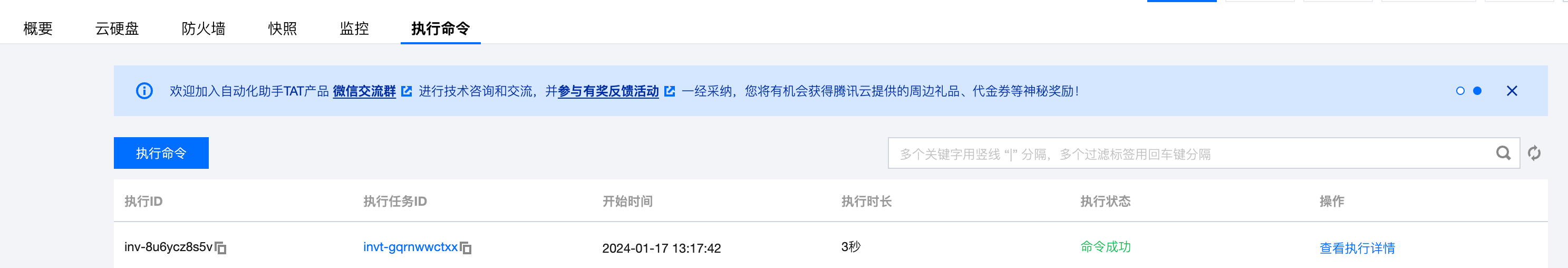 4. 在重置密码完成后,您可以前往目标实例的详情页查看重置密码的结果,选择执行命令,单击命令所在行右侧的查看执行详情。