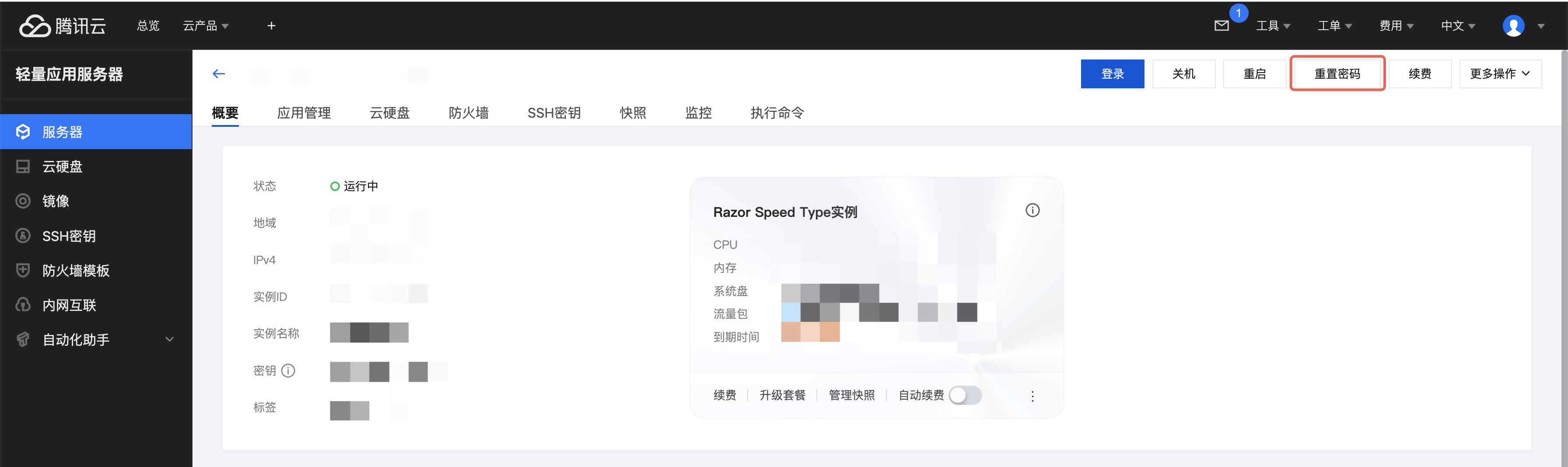 轻量应用服务器控制台支持在线重置与离线重置两种重置密码的方式。
