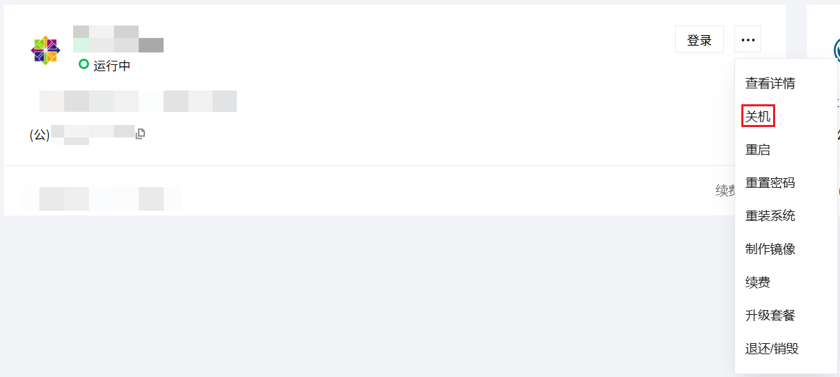 2. 在服务器列表中找到对应的实例,并根据实际的操作习惯选择不同的方式进行关机。