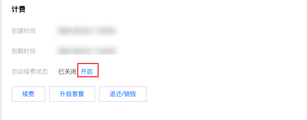 3. 在“计费信息”模块中,您可选择开启或关闭实例自动续费功能。如下图所示: