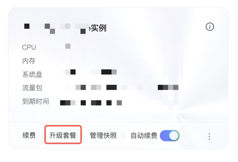 2. 在服务器列表或表格视图中,找到并进入待升级套餐实例的详情页。