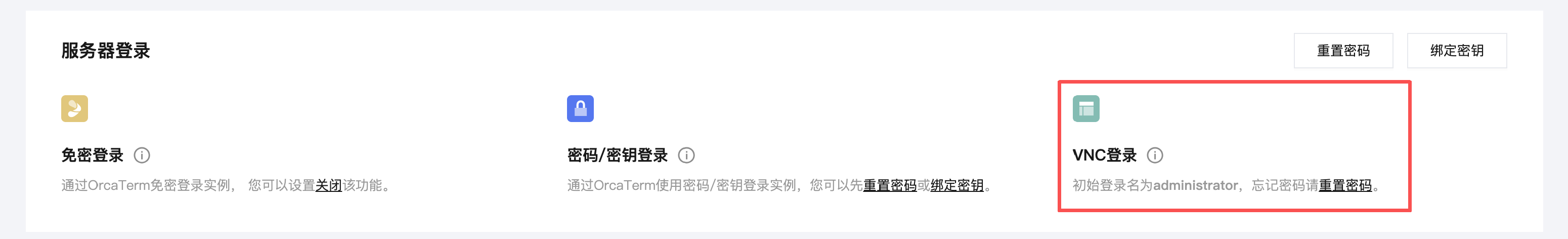 2. 在服务器列表中找到需登录的实例,进入实例详情页。选择概要页签,单击服务器登录中的 VNC 登录。