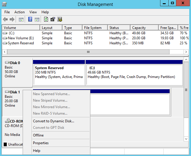 2. 右键单击桌面左下角的 ,并在弹出菜单中选择磁盘管理。 3. 在“磁盘管理”窗口中,右键单击磁盘1区域,在菜单列表中选择脱机。如下图所示: