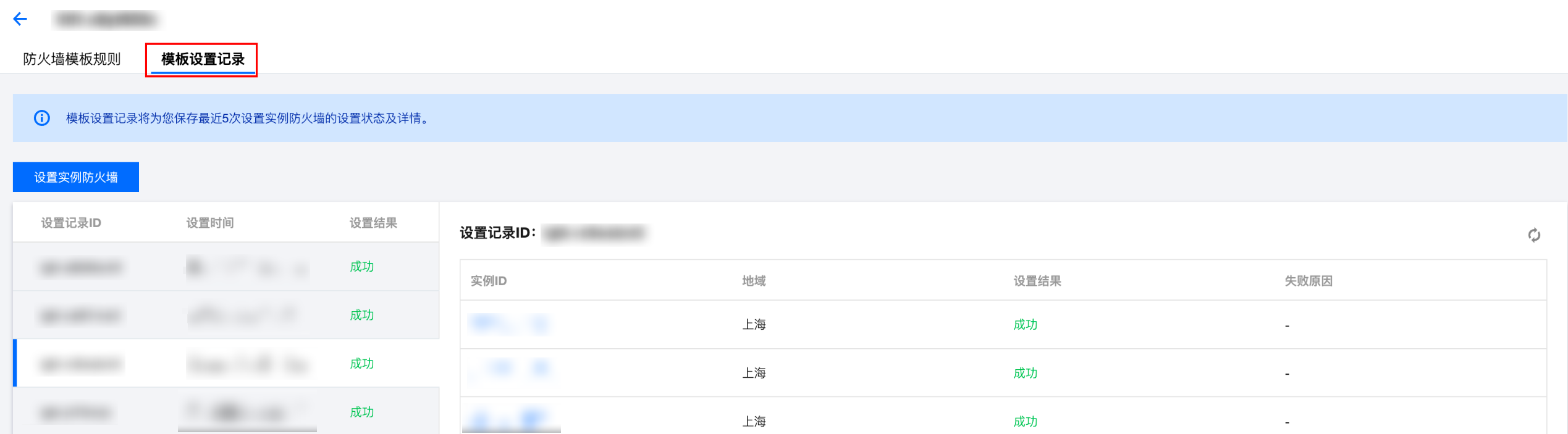 5. 设置的结果将会在防火墙模板详情页内的模板设置记录页签下展示。
