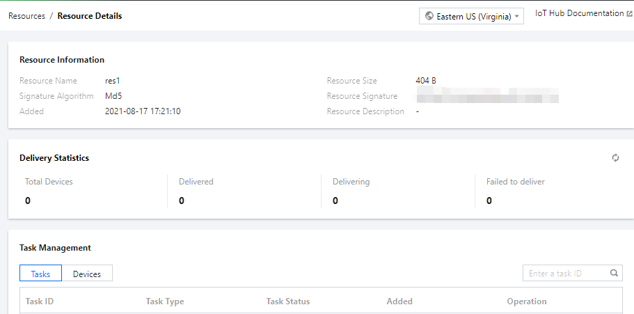 单击任务明细,可查看该资源的全部下发任务。下发任务的任务状态包含4种:未开始、创建中、创建成功、创建失败。