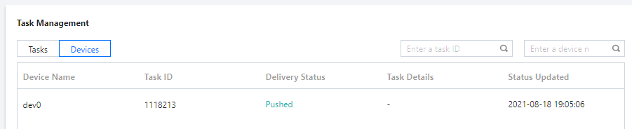 在设备详情列表,可查看该任务下发的所有设备当前的下发状态和状态详情。