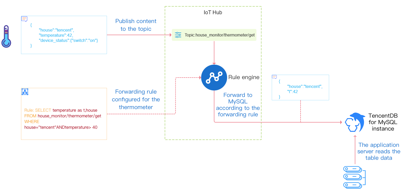 下图展示了规则引擎将数据转发给 MySQL 的整个过程: