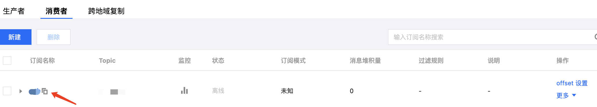 在 Topic 详情页面的消费者页签复制。