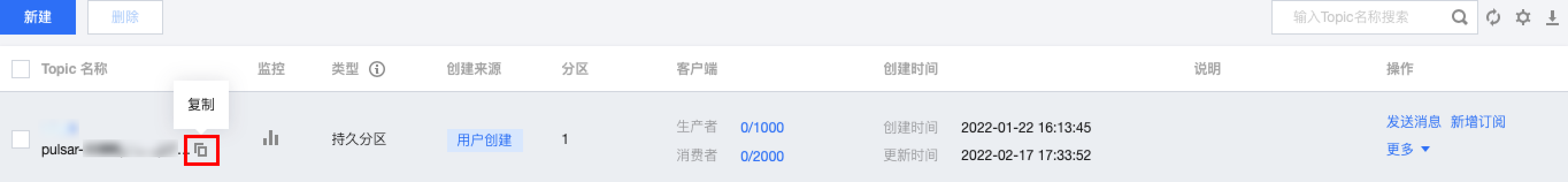 persistent://clusterid/namespace/Topic,clusterid/namespace/topic 的部分可以从控制台上 Topic 管理页面直接复制。
