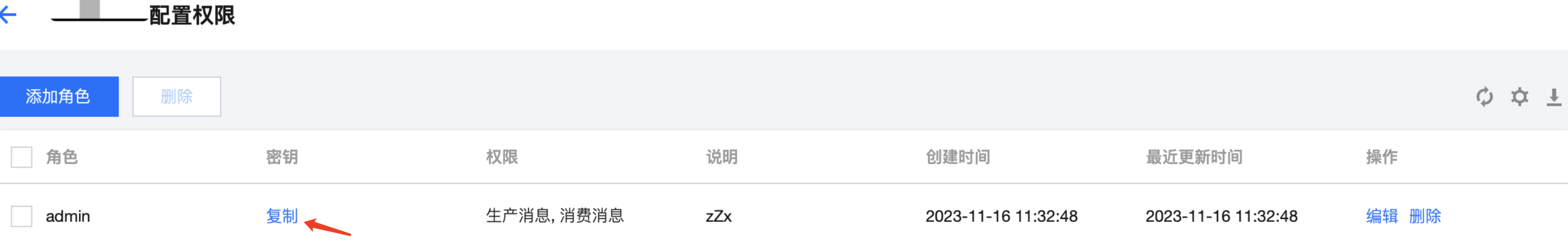 AUTHENTICATION | 角色的密钥,角色密钥可以在角色管理中复制。 ![]() |