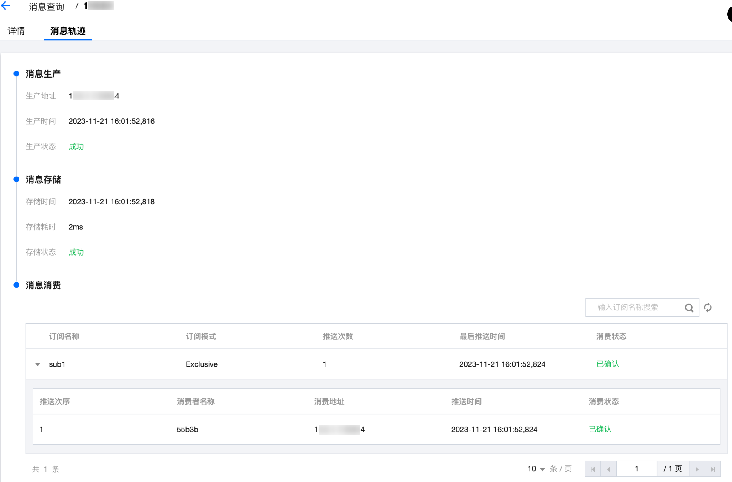 package com.tencent.cloud.tdmq.pulsar.simple;import com.tencent.cloud.tdmq.pulsar.Constant;import org.apache.pulsar.client.api.Consumer;import org.apache.pulsar.client.api.Message;import org.apache.pulsar.client.api.MessageId;import org.apache.pulsar.client.api.PulsarClient;import org.apache.pulsar.client.api.PulsarClientException;import org.apache.pulsar.client.api.SubscriptionInitialPosition;import org.apache.pulsar.client.api.SubscriptionType;/*** 消费者*/public class SimpleConsumer {public static void main(String[] args) throws PulsarClientException {// 初始化pulsar客户端PulsarClient pulsarClient = Constant.initPulsarClient();// 构建消费者Consumer<byte[]> consumer = pulsarClient.newConsumer()// topic完整路径,格式为persistent://集群(租户)ID/命名空间/Topic名称,从【Topic管理】处复制.topic("persistent://pulsar-xxx/sdk_java/topic1")// 需要在控制台Topic详情页创建好一个订阅,此处填写订阅名.subscriptionName("sub1_topic1")// 声明消费模式为exclusive(独占)模式.subscriptionType(SubscriptionType.Exclusive)// 配置从最早开始消费,否则可能会消费不到历史消息.subscriptionInitialPosition(SubscriptionInitialPosition.Earliest).subscribe();System.out.println(">> pulsar consumer created.");for (int i = 0; i < 10; i++) {// 接收当前offset对应的一条消息Message<byte[]> msg = consumer.receive();MessageId msgId = msg.getMessageId();String value = new String(msg.getValue());System.out.println("receive msg " + msgId + ",value:" + value);// 接收到之后必须要ack,否则offset会一直停留在当前消息,导致消息积压consumer.acknowledge(msg);}// 关闭消费者consumer.close();// 关闭客户端pulsarClient.close();}}