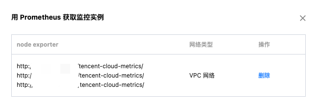 honor_timestamps,设置为 true 时,Prometheus 将使用 Exporter 提供的指标时间戳,而不是使用 Prometheus 服务器接收到指标的时间戳。scrape_interval,为抓取监控度量数据的频率,目前的监控指标是分钟级的。metrics_path,获取监控指标的路径,请设置为 /tencent-cloud-metrics/。scheme,配置访问资源的协议,当前仅支持 http。指标 | 指标名 |