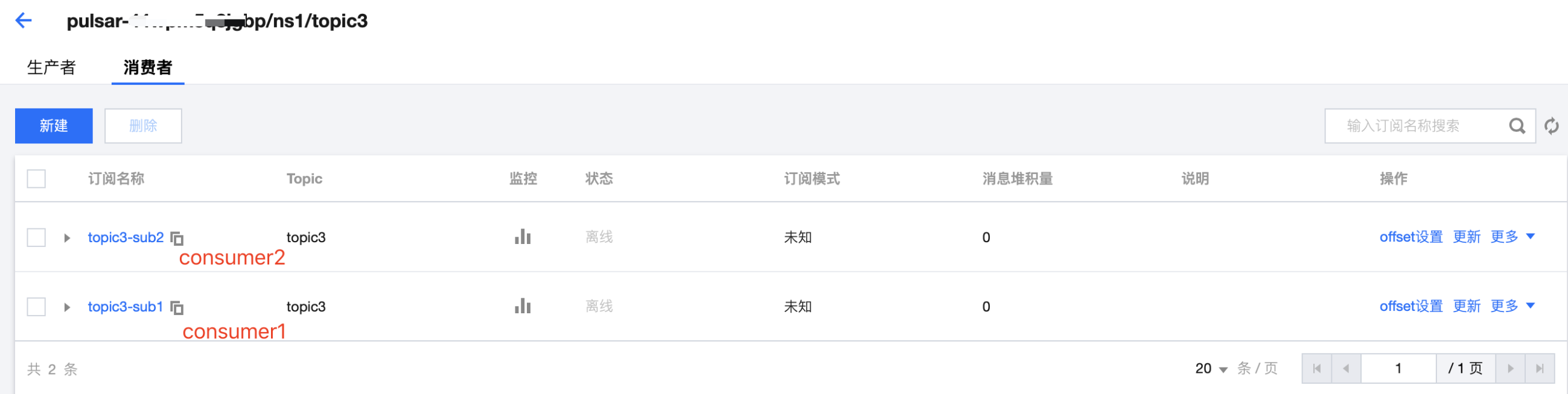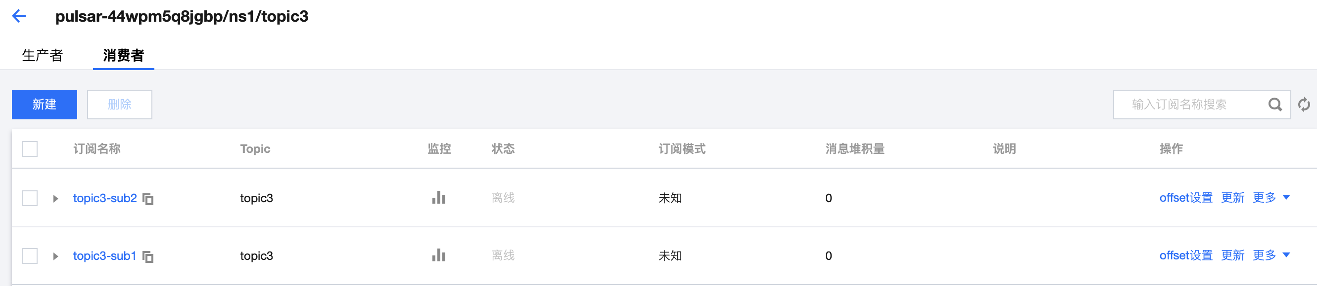 5. 单击操作列的更多 > 查看订阅/消费者,可看到刚创建好的订阅。