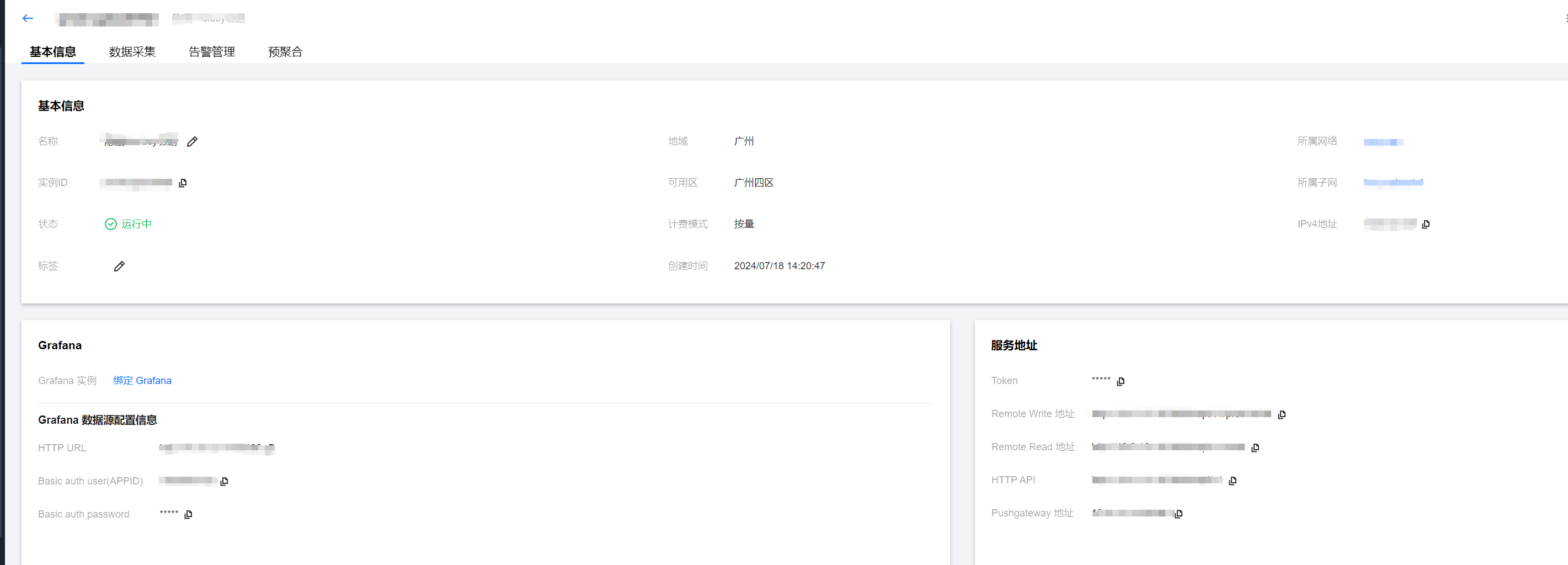 为了方便用户查看 Prometheus 实例基本信息,您可以在实例列表页面选择对应的实例,进入实例管理页查看实例的基本信息。