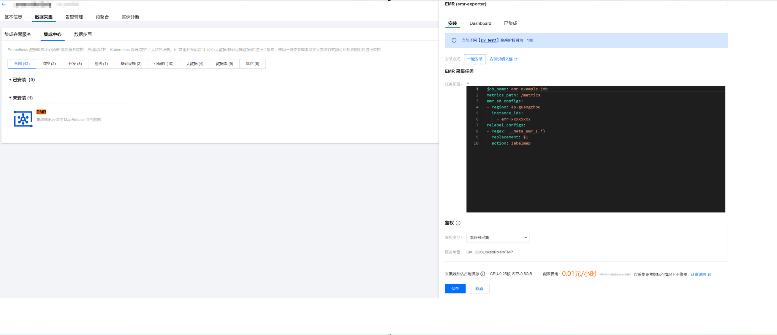 在使用 腾讯云弹性 MapReduce(以下简称 EMR)产品过程中,需要将 EMR 监控指标上报到 Prometheus 监控服务,可参考下文指引。下文将为您介绍如何快速采集 EMR 监控指标。 前提条件
