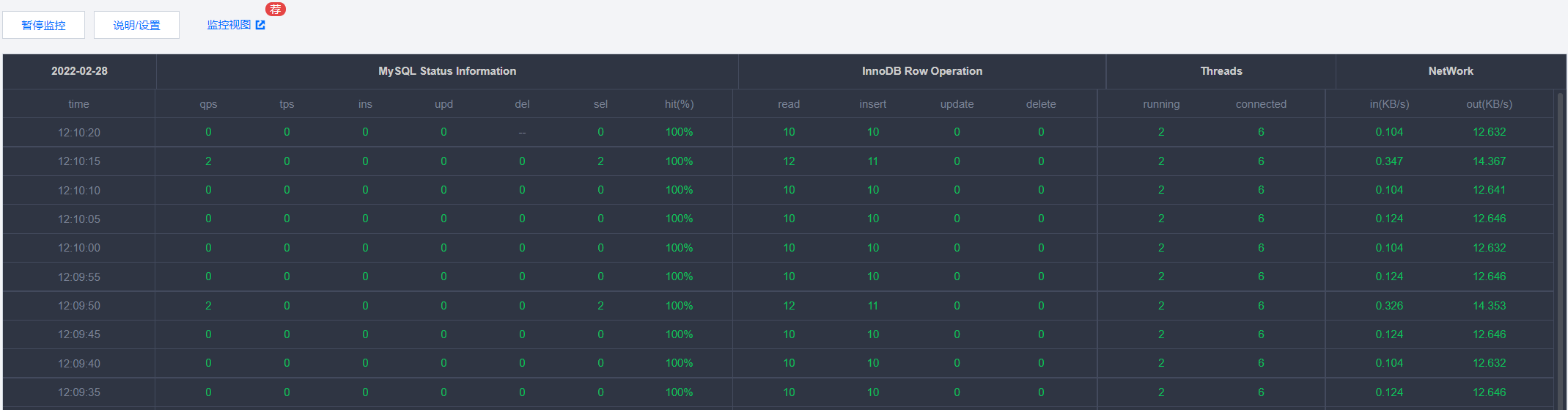 [hit%] 表示缓存命中率,主要指 innodb_buffer_pool 的命中率。