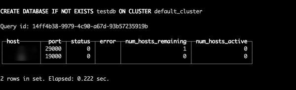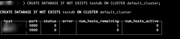 CREATE DATABASE IF NOT EXISTS testdb ON CLUSTER default_cluster;