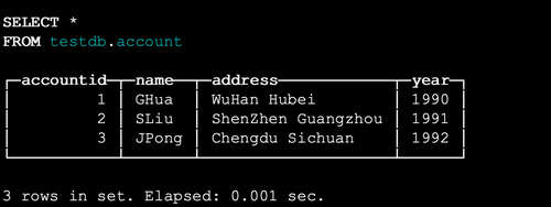 select * from testdb.account;