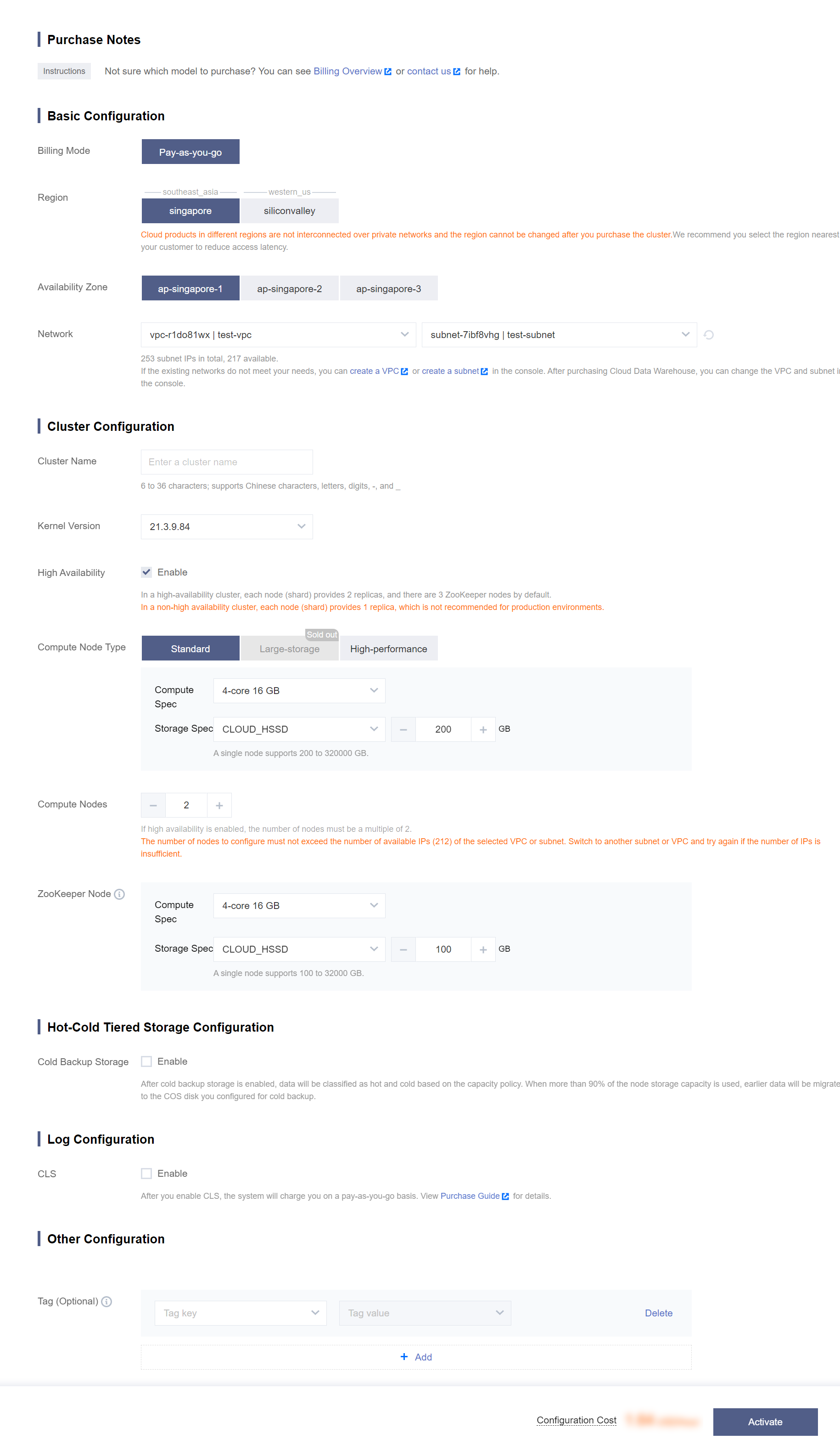 网络 | VPC 为一种隔离的,安全性高的专有网络环境。可以新建或者选择已有的 VPC 网络和子网。 |