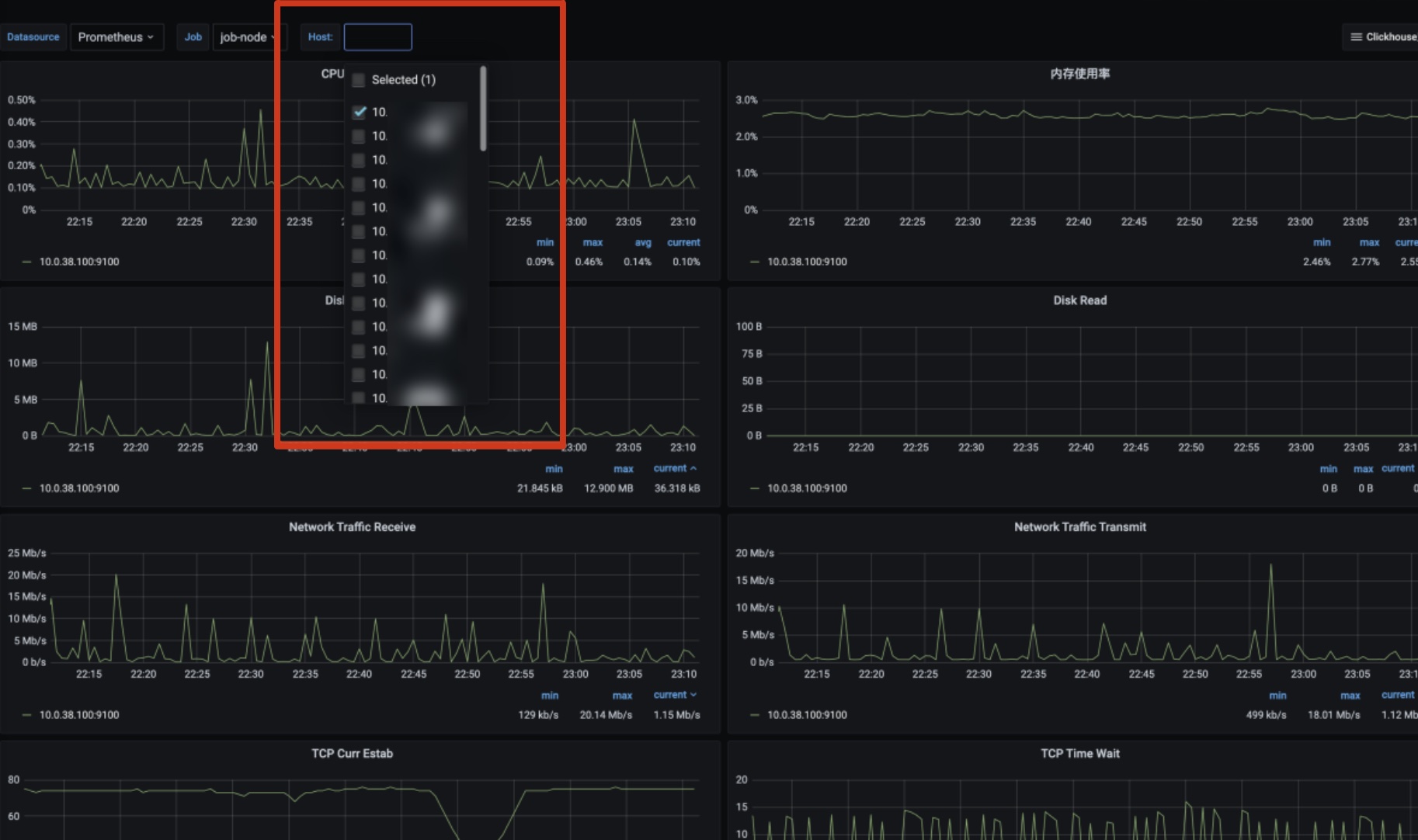 内存使用率 | 各节点的内存使用量 |
