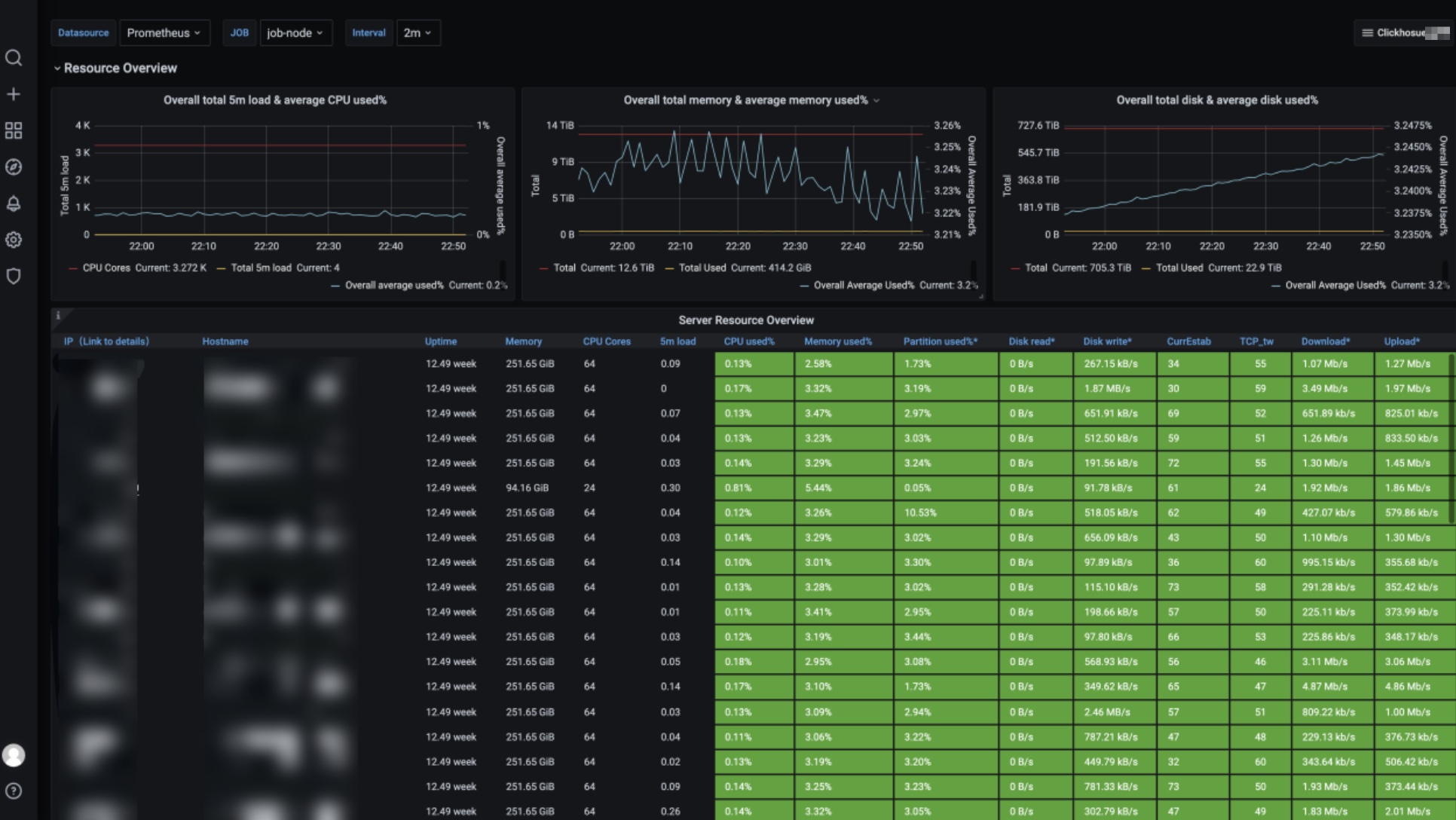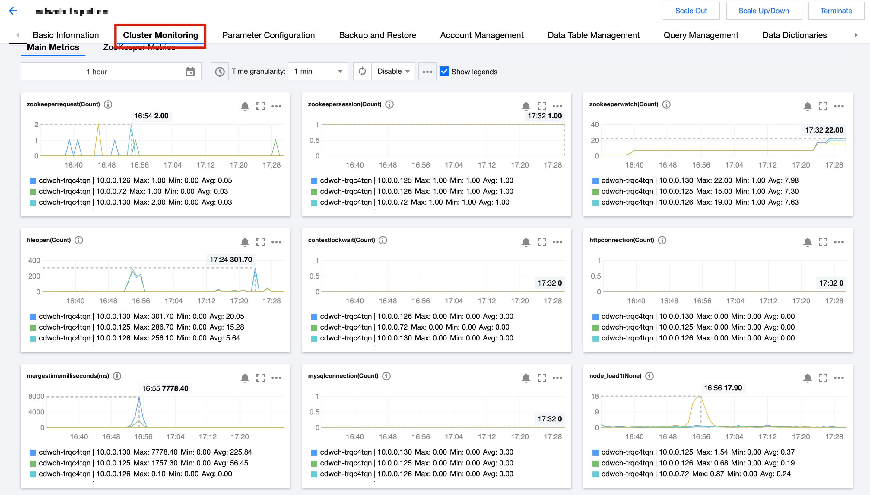 CPU 一分钟负载 | 各节点分钟级的 CPU 负载 |
