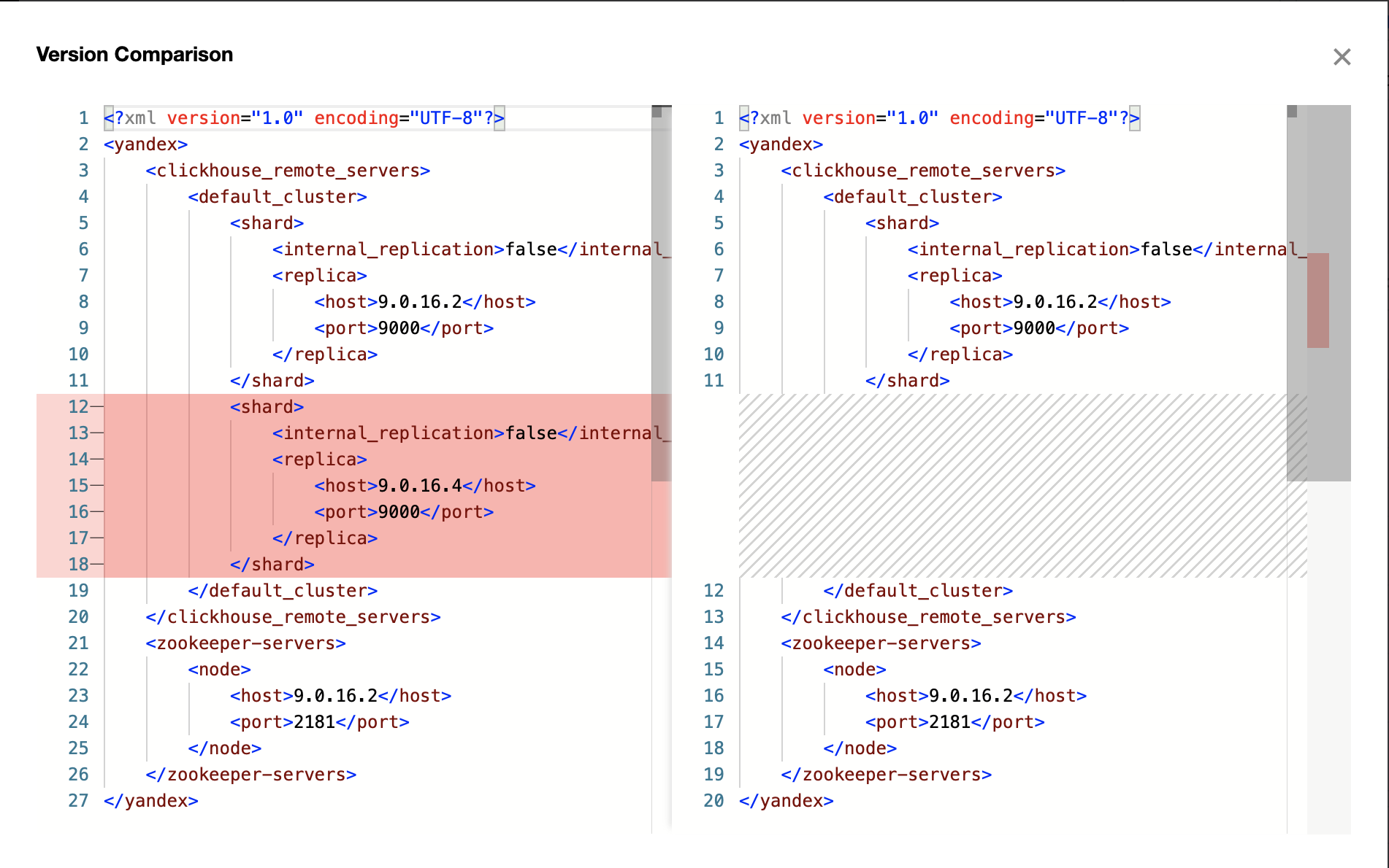 <yandex><clickhouse_remote_servers><default_cluster><shard><internal_replication></internal_replication><replica><host></host><second_host></second_host><port></port><user></user><password></password></replica></shard></default_cluster><new_cluster_1><shard><internal_replication></internal_replication><replica><host></host><second_host></second_host><port></port><user></user><password></password></replica></shard></new_cluster_1></clickhouse_remote_servers><zookeeper-servers><node><host></host><port></port></node></zookeeper-servers></yandex>