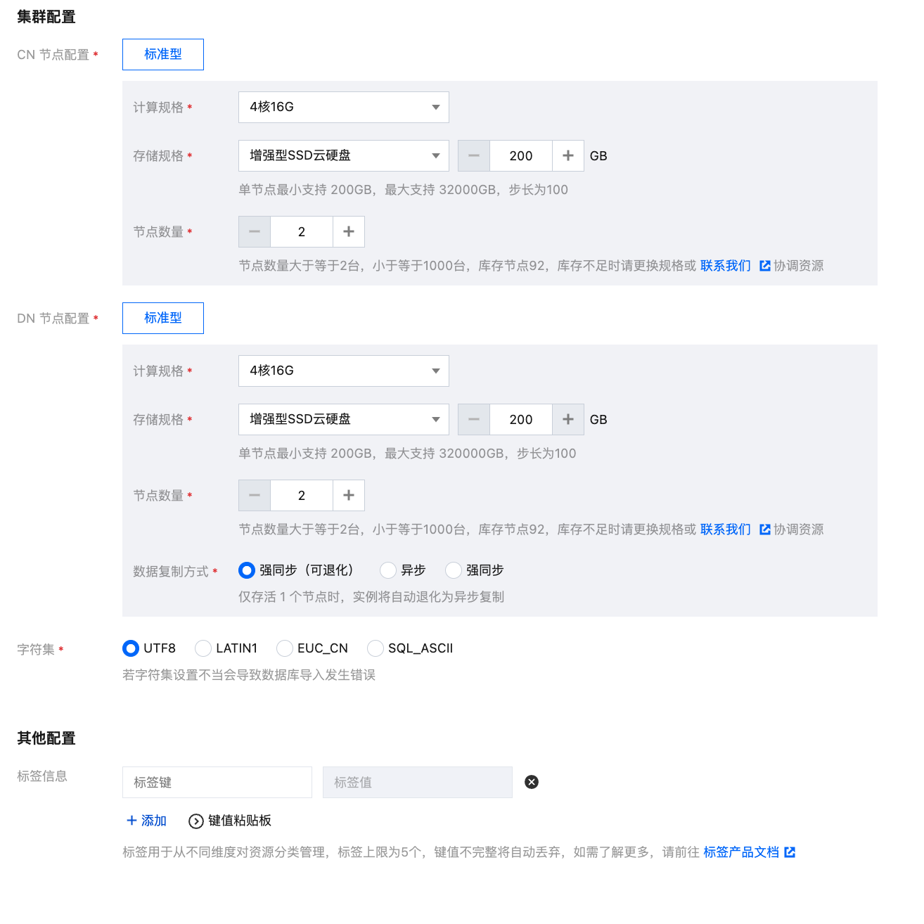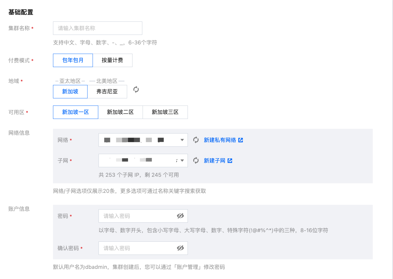 2. 单击新建进入购买页,根据需求输入参数信息。