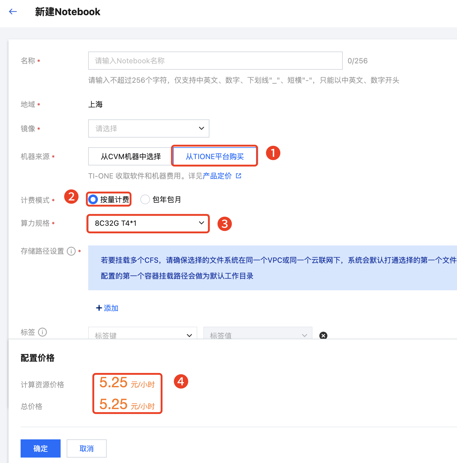 选择算力规格后,页面底部将显示对应的配置价格。不同规格的价格详见计费概述。