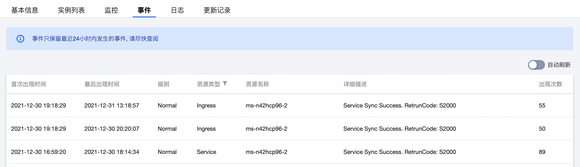 1.6 完成扩缩容策略的内容配置后,单击更新服务即可进行配置信息保存,待服务完成更新后,您所配置的自动扩缩容策略即会生效。