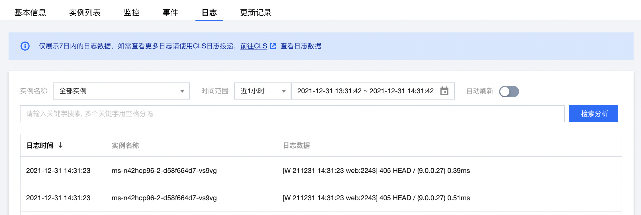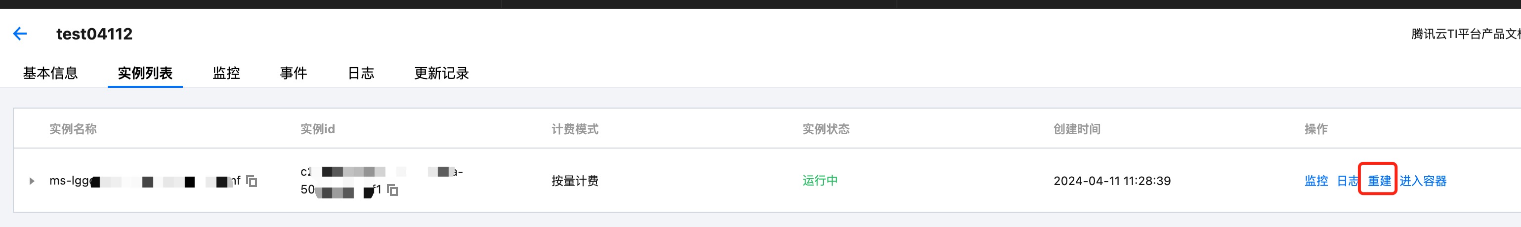 重建实例,您可单击名称进入服务管理,再单击服务名称进入实例列表。