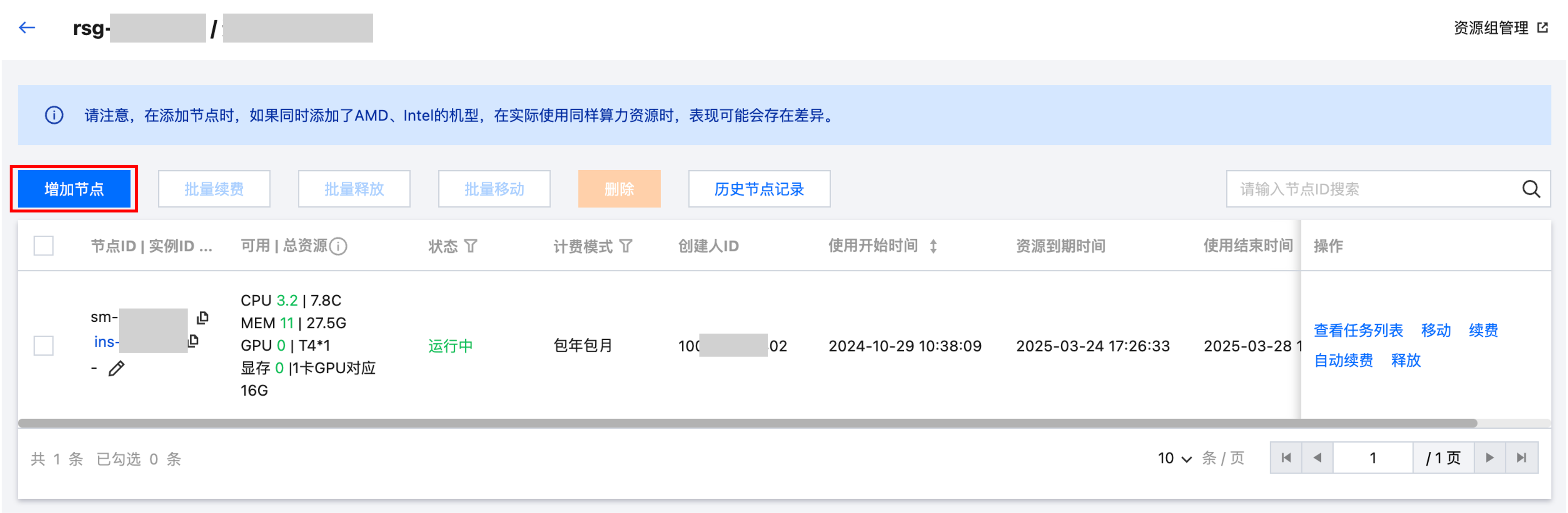 在上述情况下,您也无法上述节点直接移动至其他资源组;但可以将节点从资源组中移除,并重新添加至新创建的资源组,从而可以使用虚拟化功能。