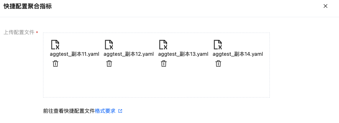 创建聚合指标配置和YAML文件(如 aggregation_config.yaml),按照上述格式定义聚合规则:
