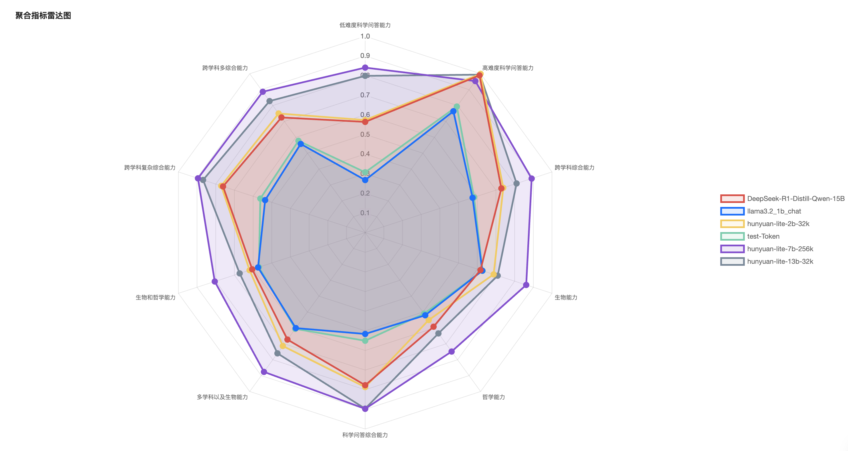 5. 单击应用,右边即可出现选中评测任务,基于选择的模型和聚合指标进行雷达图对比展示,如下图: