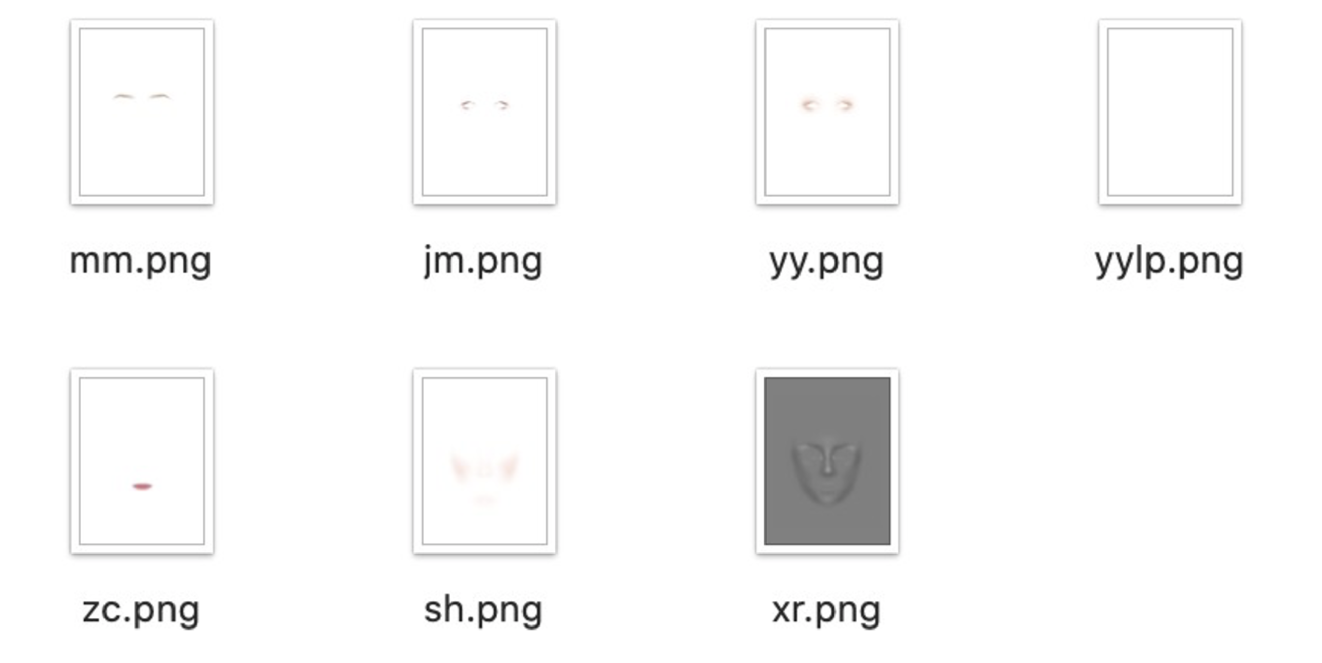 建议妆容文件以具体部位拼音缩写命名,便于在 Tencent Effect 中查找对应素材。