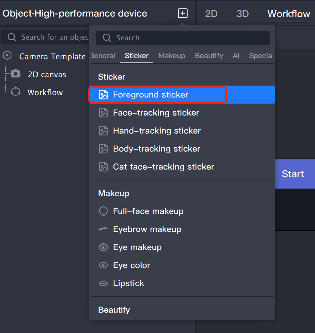 5. 编辑轮播对象:此处分别添加前景贴纸、人脸跟随贴纸两个对象。