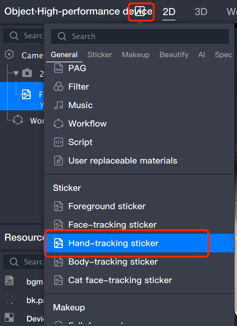 手势跟随贴纸即拍摄时实时跟随手部的贴纸。目前 Tencent Effect 支持将 2D 贴纸文件和 PAG 文件添加到手部。
