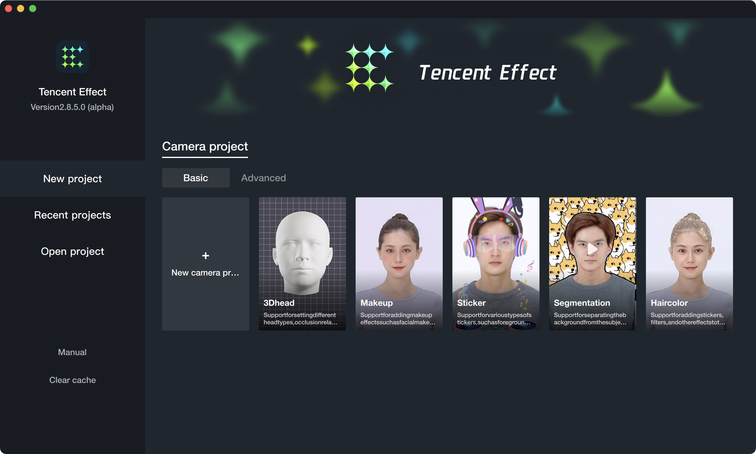 拍摄项目:内置了一些常见的玩法项目模板,用户可以直接打开模板修改使用。