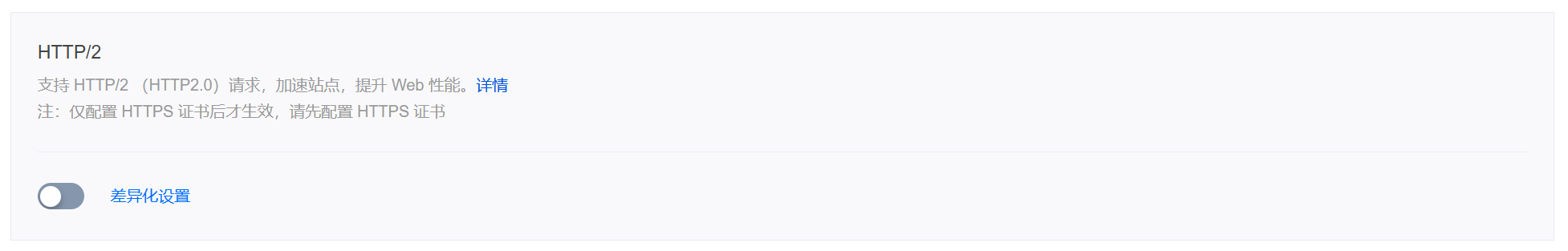 3. 找到 HTTP/2 配置卡片,默认为关闭状态,单击开关开启配置。
