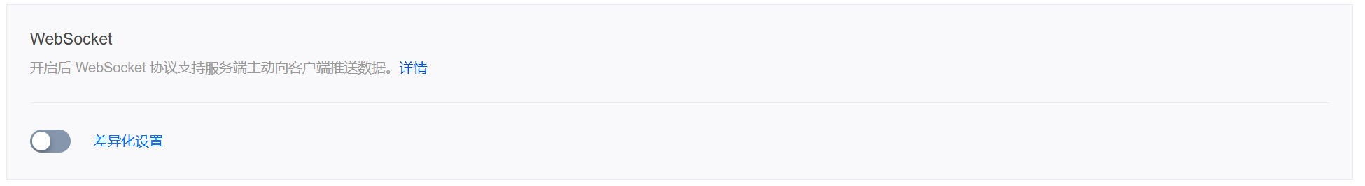 开启状态:默认关闭,不支持 WebSocket 协议。开启后支持 WebSocket 协议。