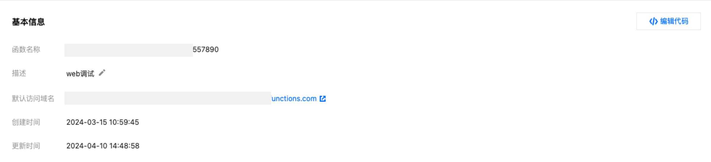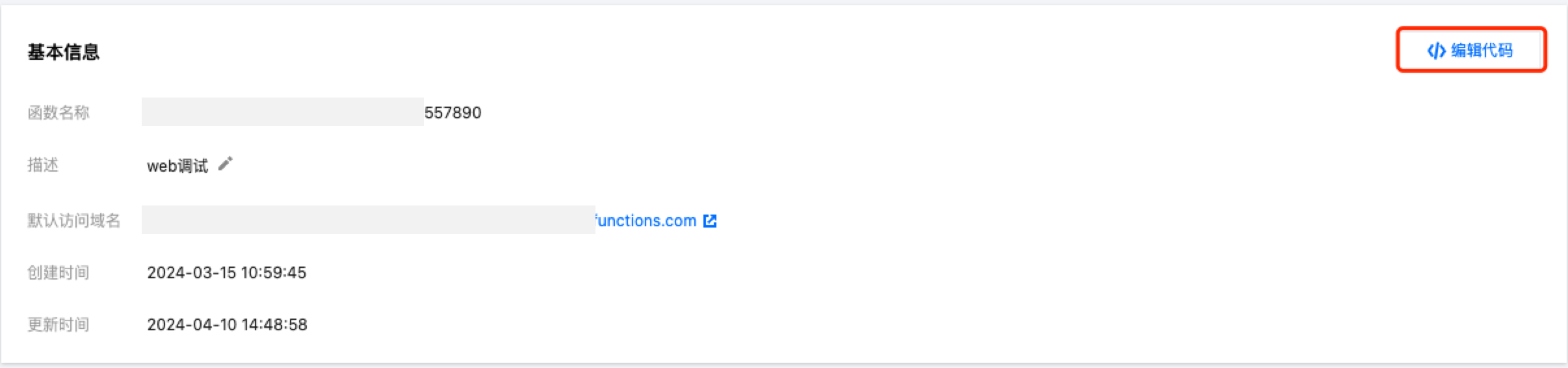 1. 在函数管理页面,选择需要修改的函数,单击该函数名称,在函数详情基本信息页单击编辑代码。