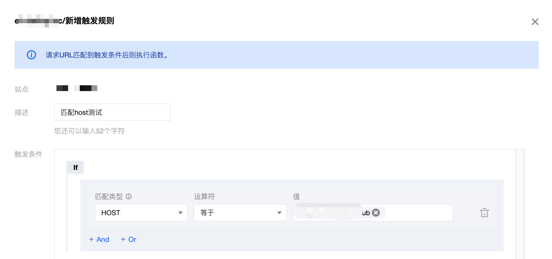 如期望通过设置匹配站点的 HOST、URL Path 或文件后缀等方式触发函数执行,可通过如下2个步骤操作: